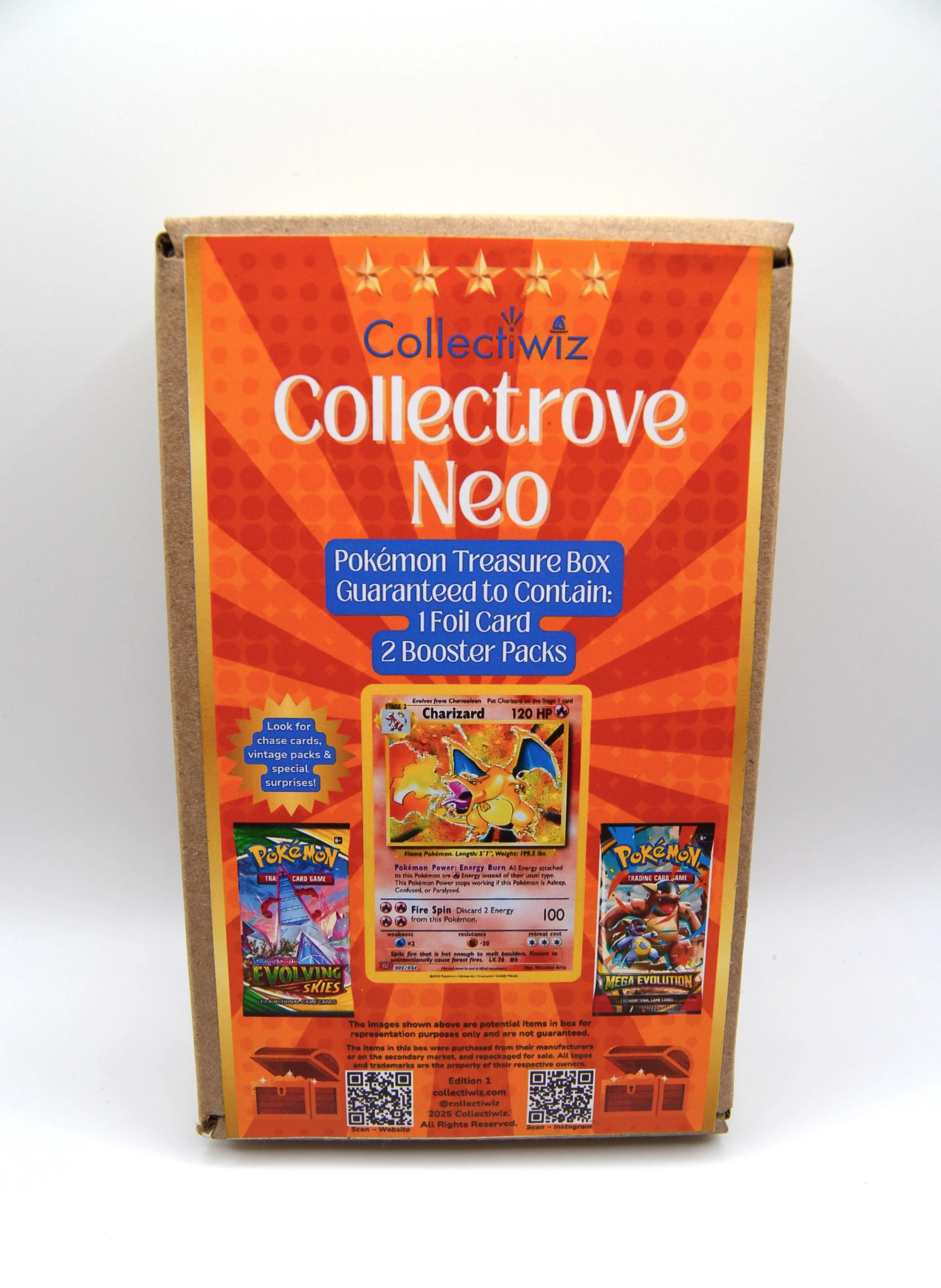 Alongside these epic centerpieces, our treasure box contains two carefully selected booster packs that provide the thrill of uncovering rare and powerful Pokémon cards, including a chance at awesome packs from sets like Evolving Skies, Scarlet & Violet 151, Sun & Moon, and more.